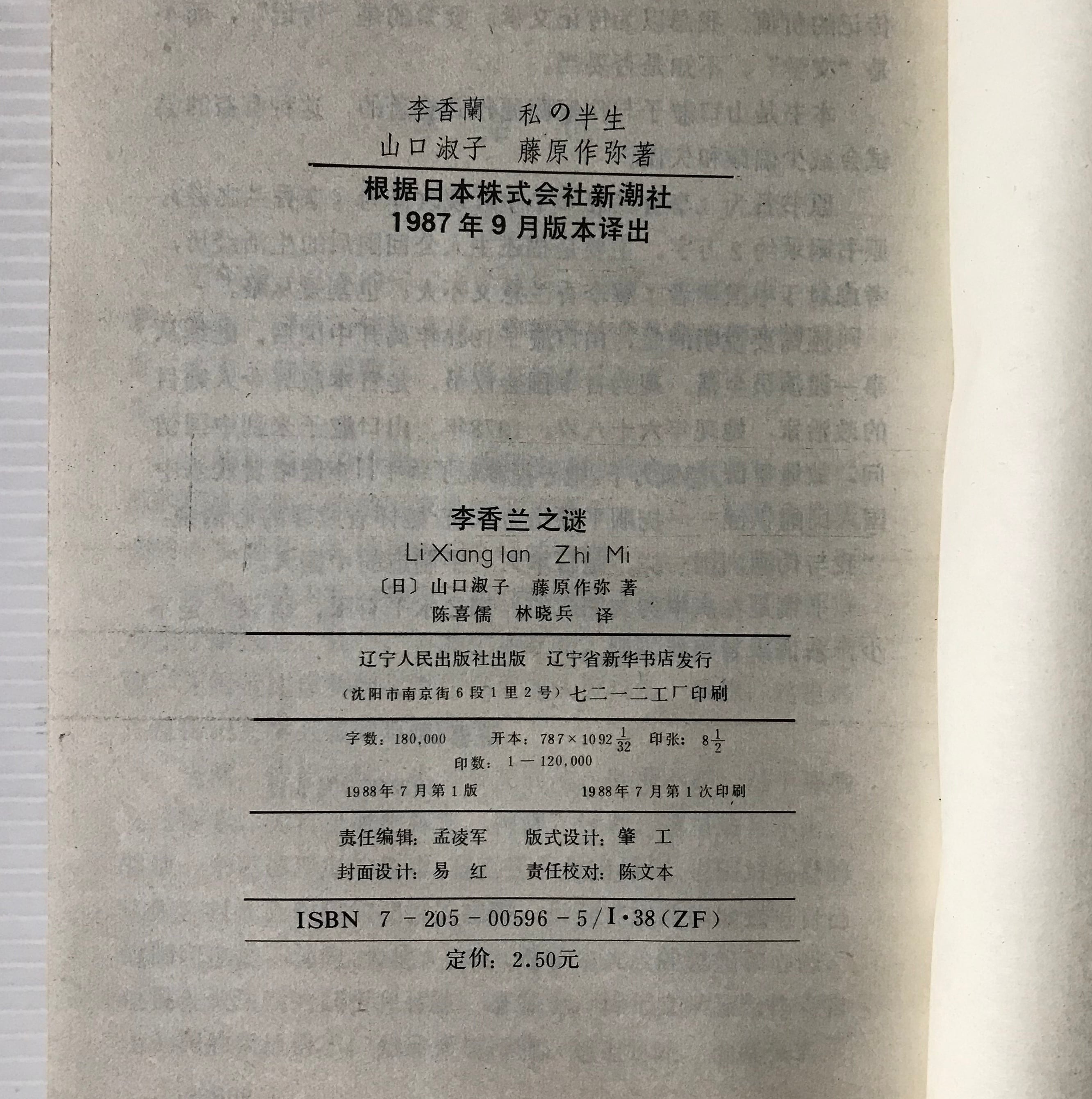 遼寧人民出版社、1988年発行、267p、19cm
