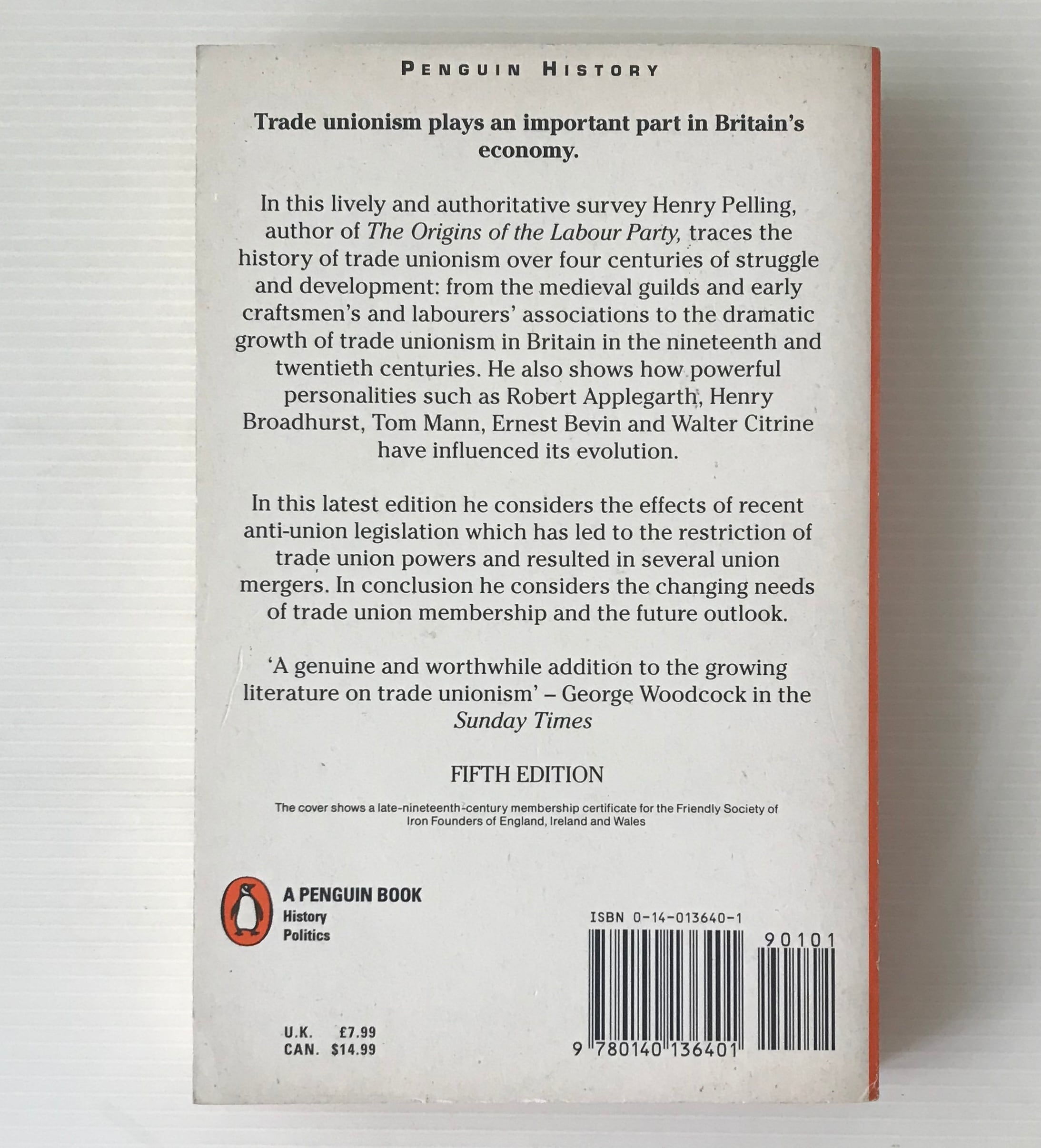 A History of British Trade Unionism 5th ed イギリス労働組合運動史 Henry Pelling ヘンリー・ペリング Penguin books