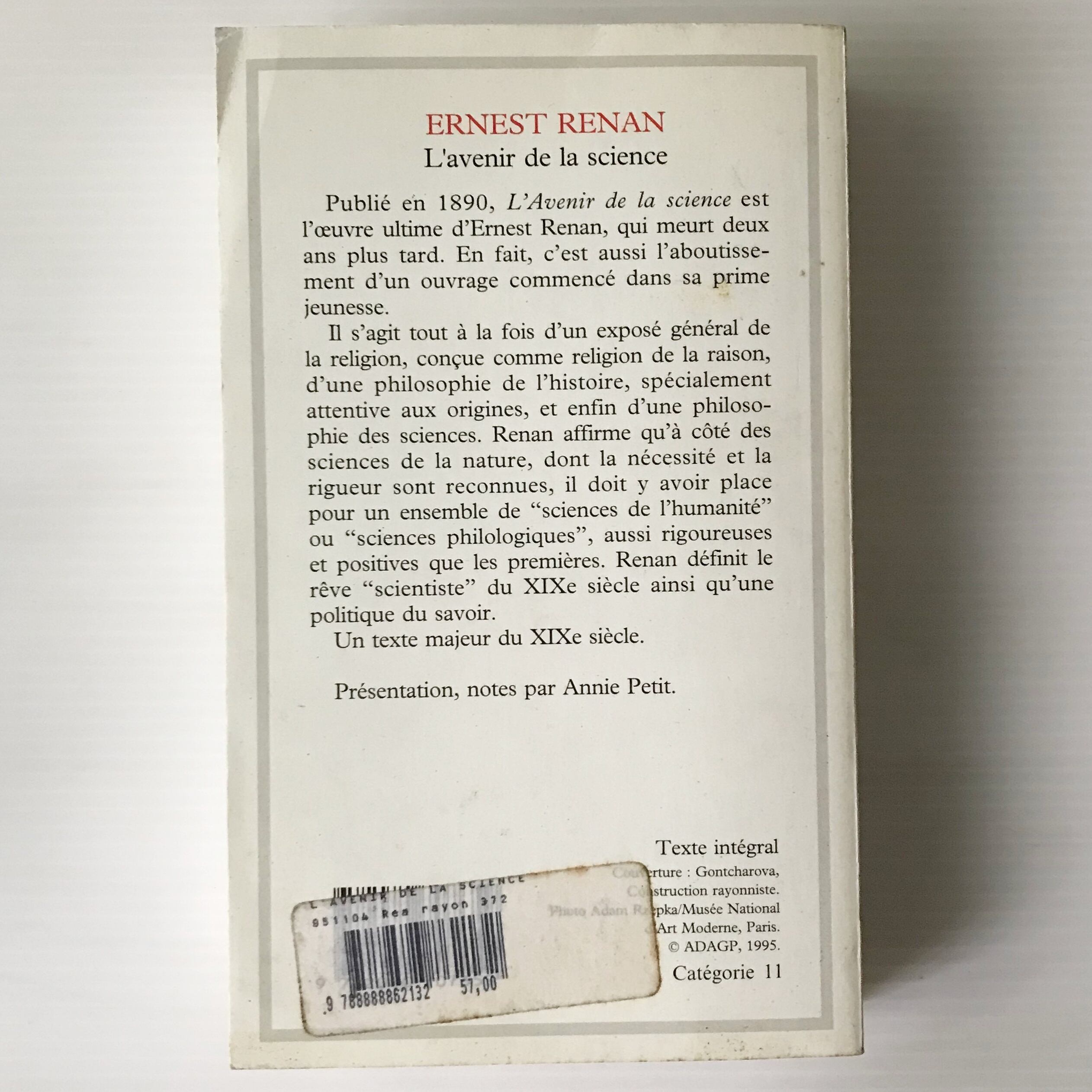 L’Avenir de la science Ernest Renan Flammarion