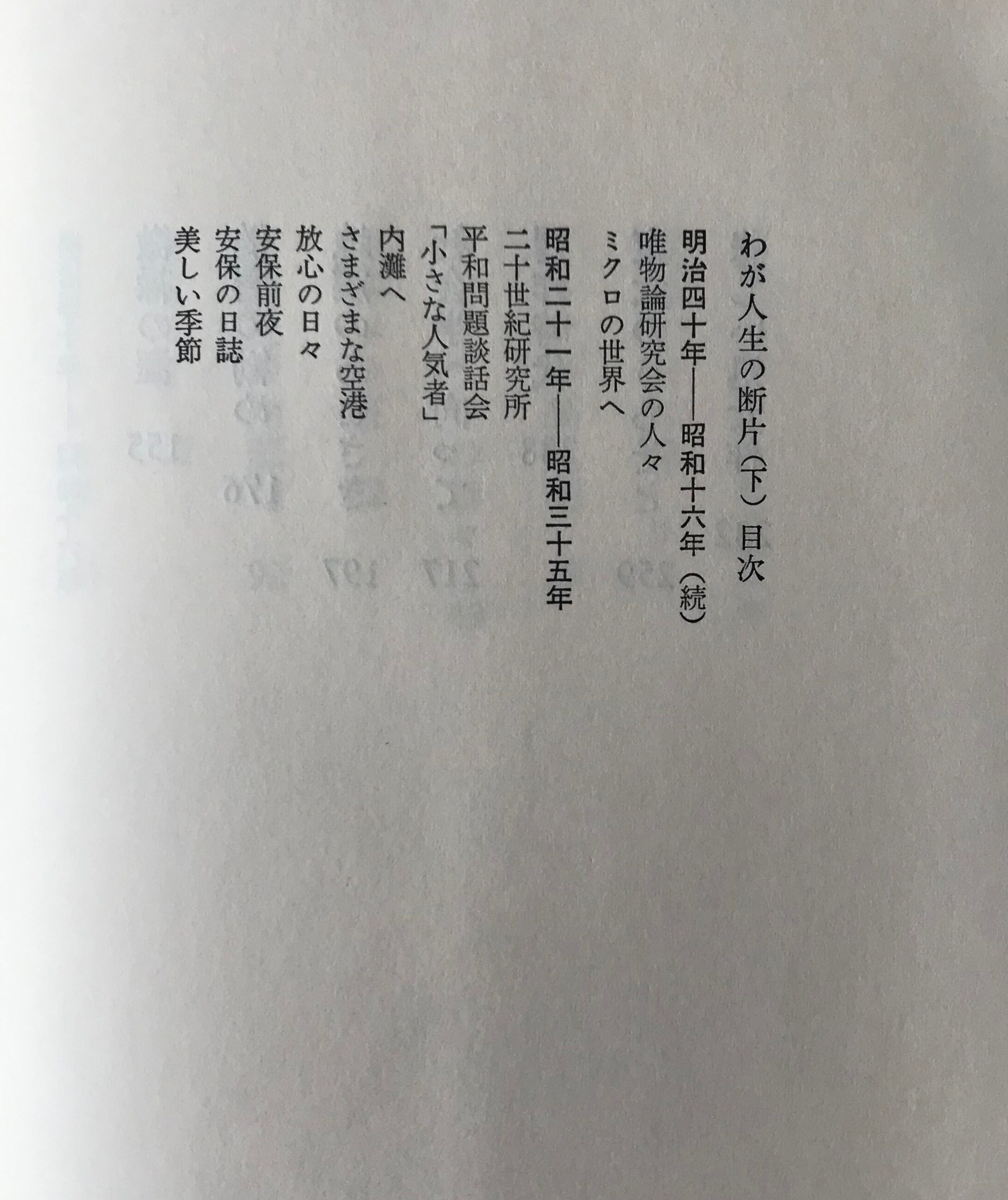 わが人生の断片 上下巻 清水幾太郎 著 文芸春秋