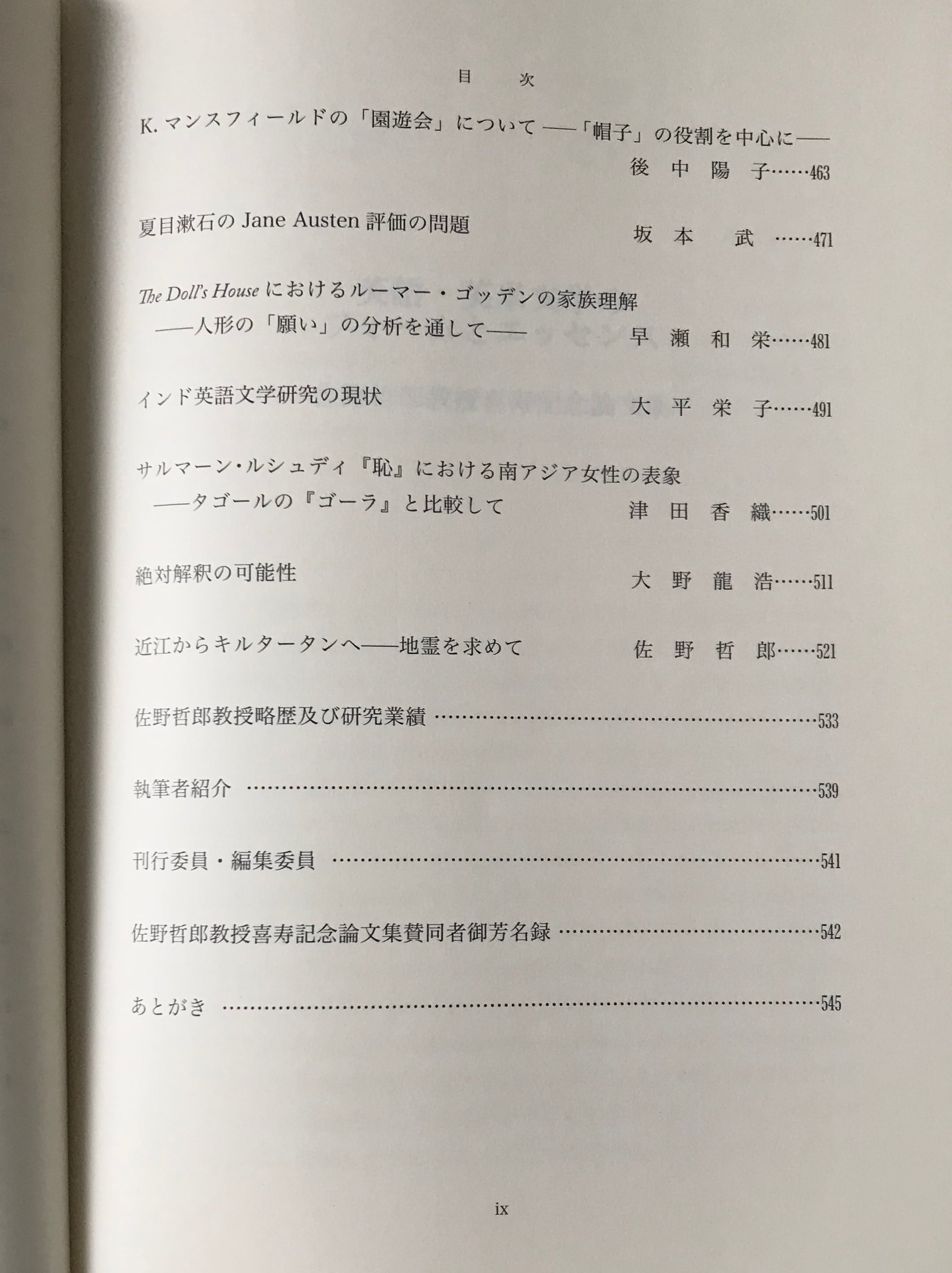 佐野哲郎教授喜寿記念論文集刊行委員会編